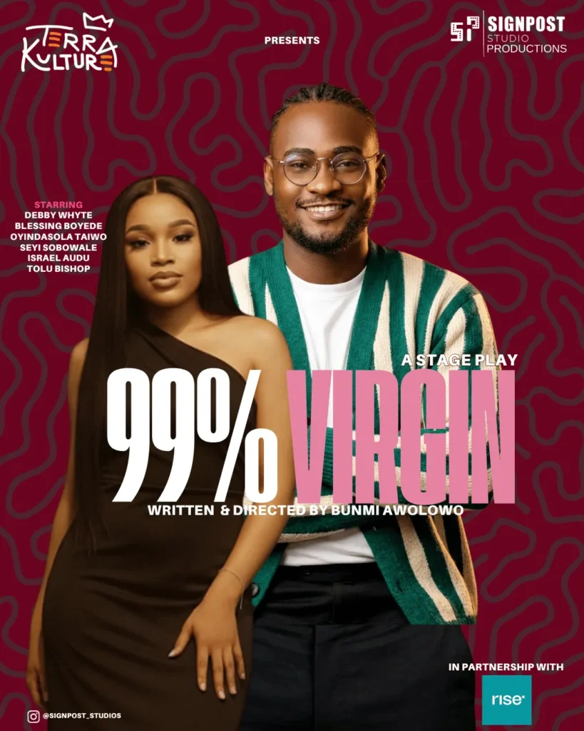 In all, 99% Virgin attempts to be a number of things one cannot really slam meaty fists on. A critique of marriage and the expectations for women in that system as is? Maybe that would have worked if there was serious and sequential treatment of the concept beyond Simisola’s discordant pitch. Perhaps, it functions as an examination of sex in a world that perplexingly has so much it yet speaks so little about it—especially in the case of celibacy, but it is too tropey and thus reliant on conclusions already telegraphed by theatre precedence elsewhere. In this vein, the play felt too safe for the veritably adult audience that came to see it. If inclined, one could even eke out an appraisal of religion from the play, but it came across more like Awolowo trying to incorporate laissez-faire radicalism in a bid to legitimise what was invariably a Christian outcome. This is even more baffling because there is no point in Whyte’s mildly Adjanic performance where you are not convinced that the only solution to her problems is a heavy serving of premarital sex.